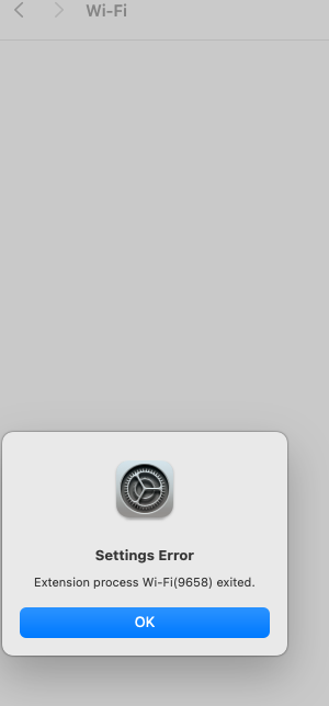 WiFi and Bluetooth work (as does Ethernet). “Hot spot”, Hand off, Continuity and Airdrop do not function however (FeatureUnlock: enabled). When trying to get WiFi information by clicking on the “three dots in a circle” in WiFi panel, nothing happens. In addition, trying to activate hotspot in Wi-Fi preferences panel causes crash ( see attached photo for message). iWork applications will launch, but crash when trying to open an existing or new document.