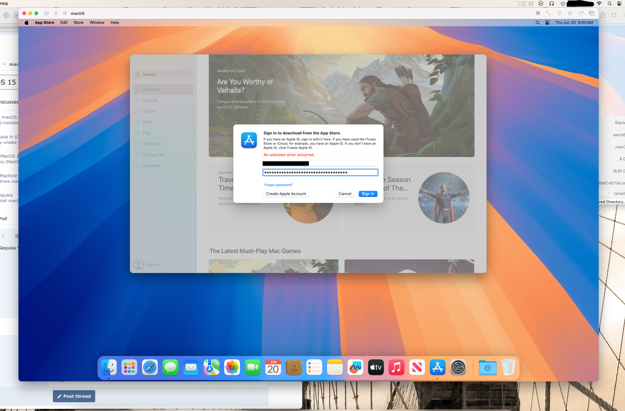 Has anyone created a Sequoia VM AND successfully logged in to iCloud. Im on the Sequoia beta and I get "An unknown error has occured" every time I try.