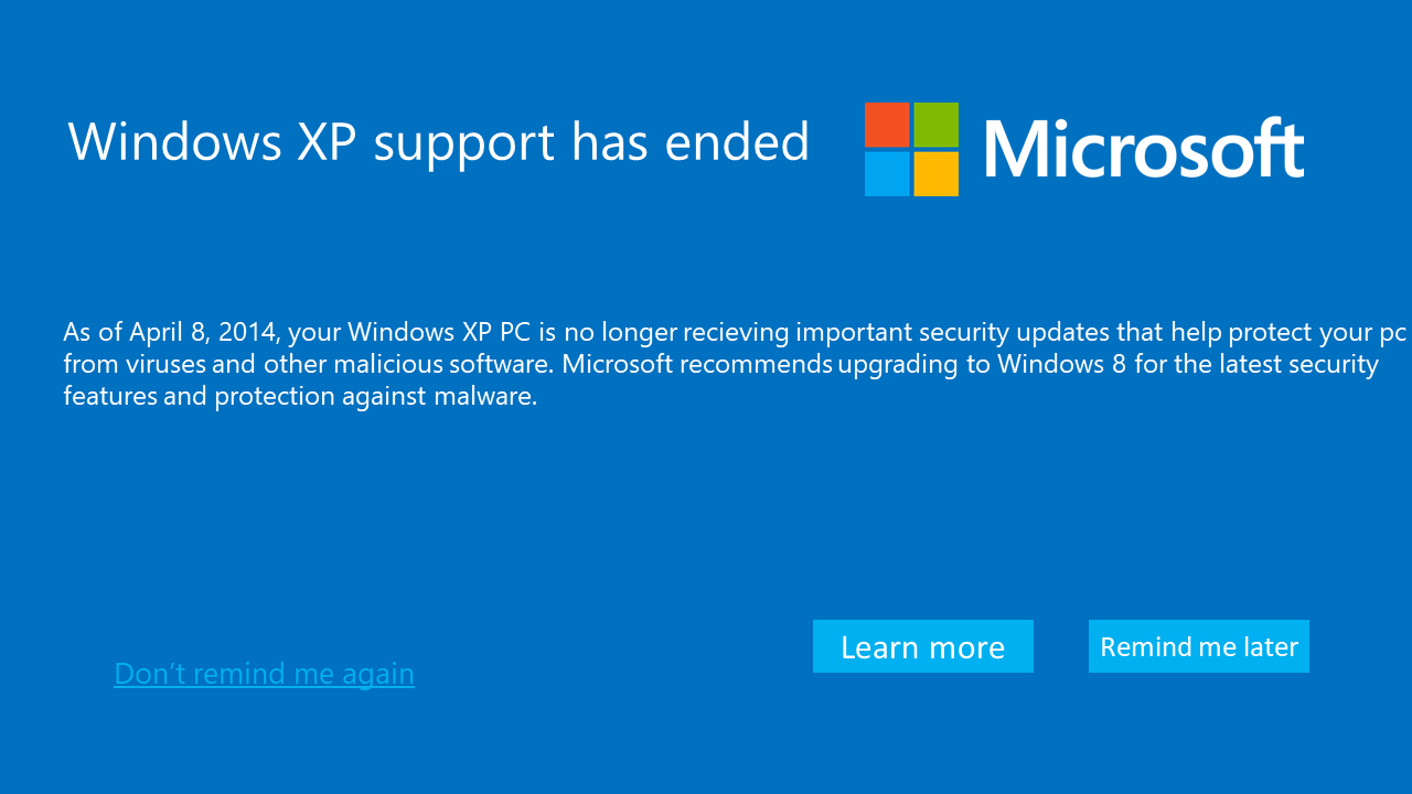 Also, for the record, those popups tend to create more confusion than anything. People don't understand the concept of software lifecycles, security updates, etc.