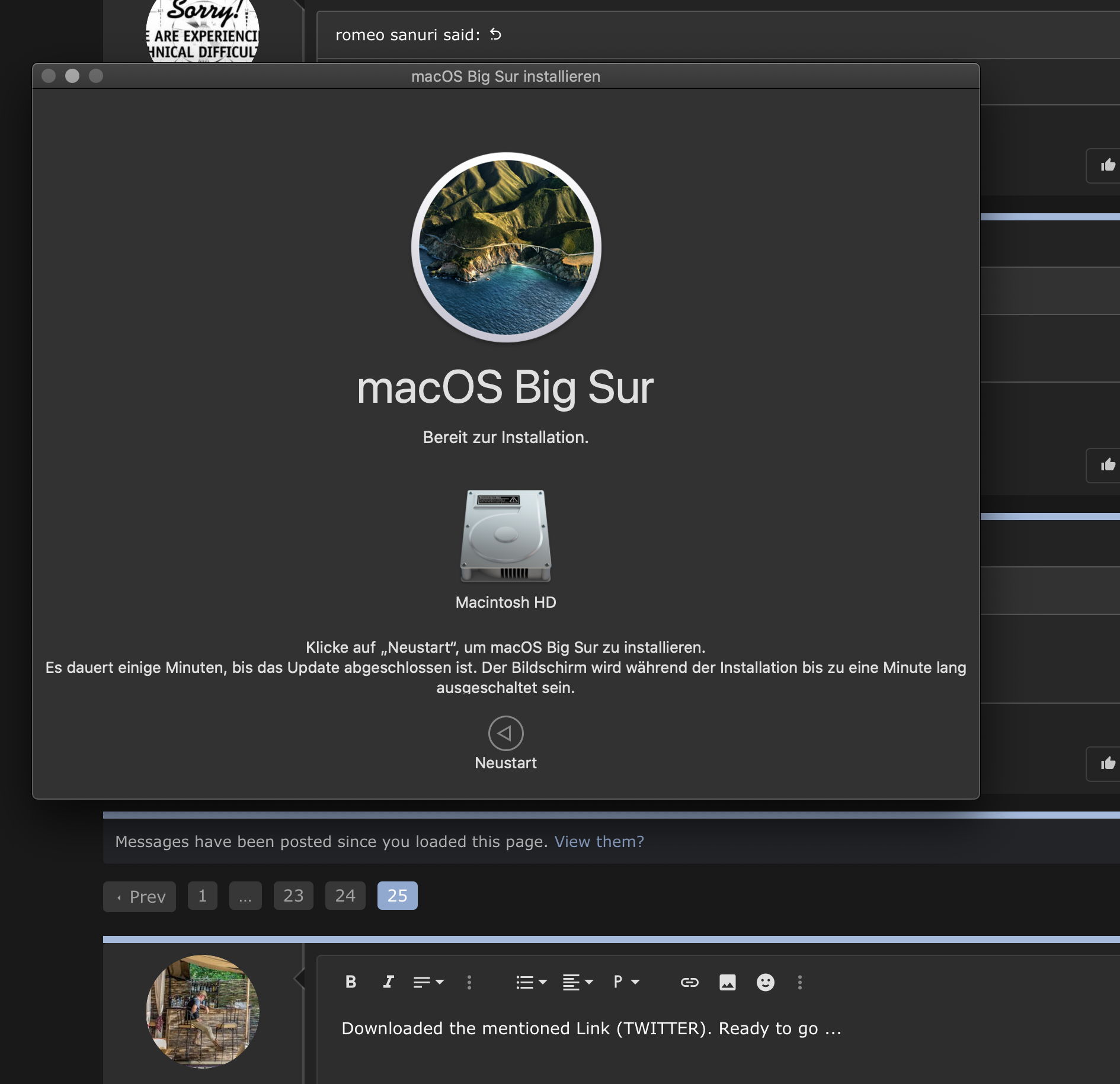 Can you confirm this outside of your experience ?Yup one machine I jumped on earlier and after a few hours completed the download won't install or re-download. Another I waited until Apple Support showed issue resolved and it works. Installing. Early adopters got hosed.
