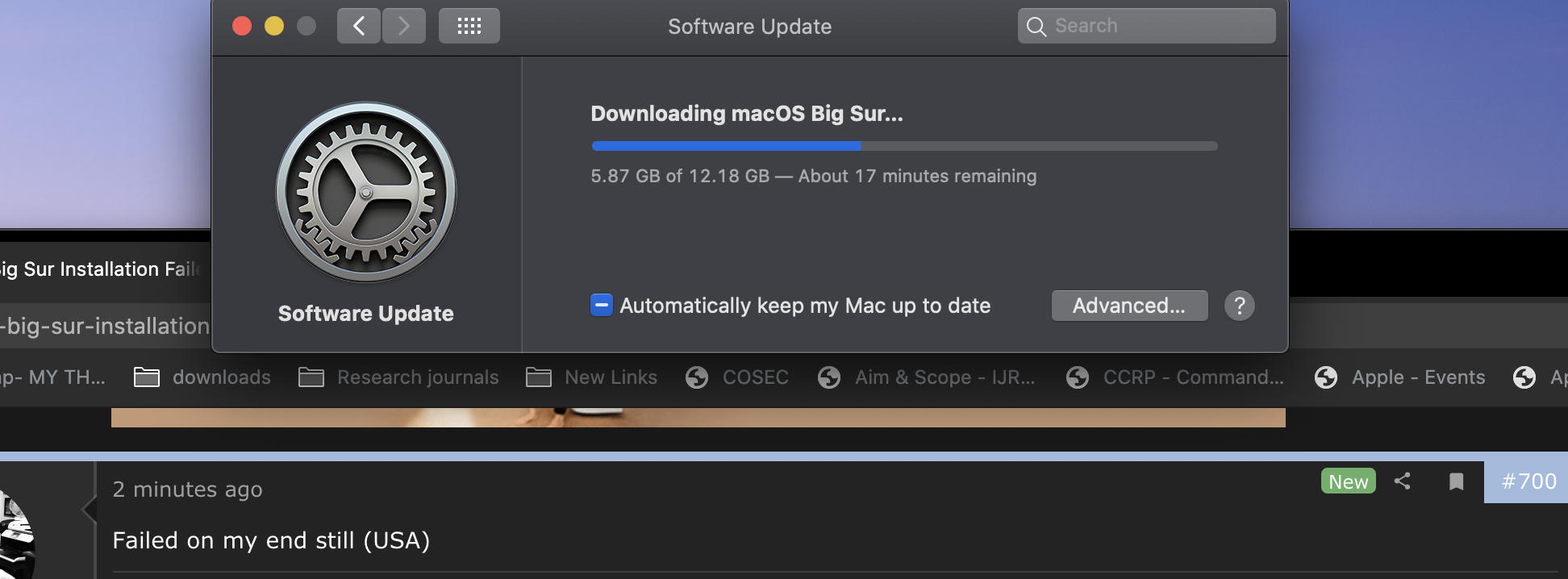 Just tried that following your suggestion. Unfortunately, it did not work for me.Works fine here. Downloaded 12.18 gb and installed. All i did was connect my imac 2 my iPhone 4G instead WiFi and works slow but like a charm yay