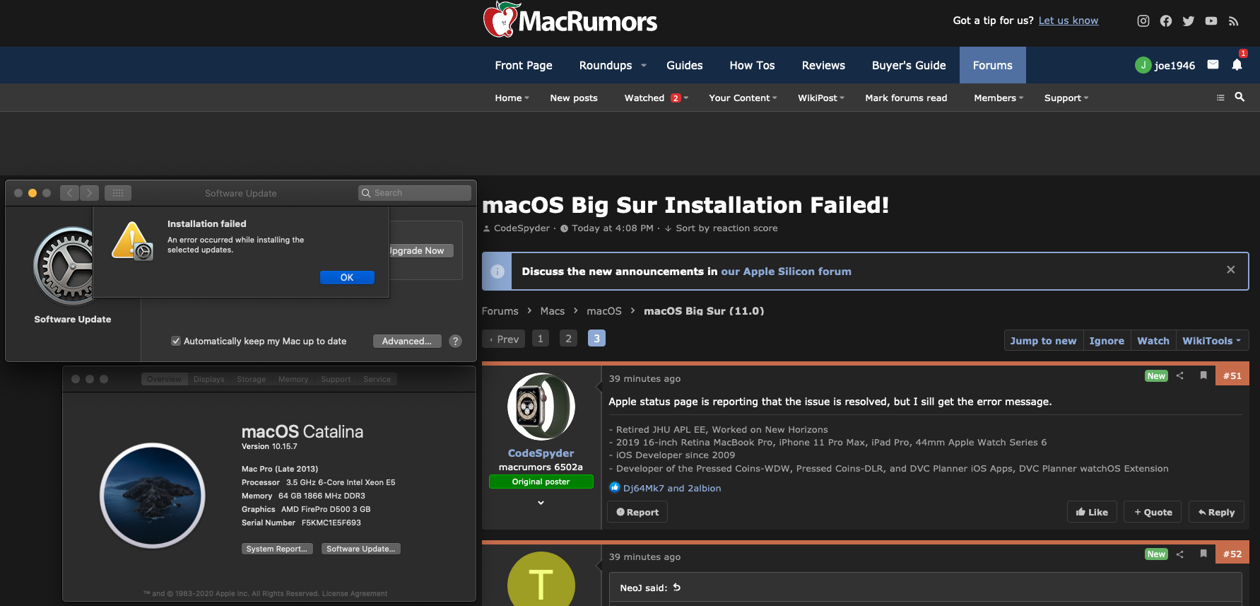 But after installing Big Sur even the Final Cut Pro app update failed to install had to retry it 3 times before it installed.