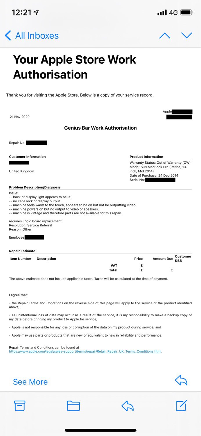 If you cannot get help try to unplug i/o board, consider to get it replaced or if you are confident find yourself a spare part and follow the fixit guide.