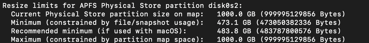'sudo diskutil apfs resizeContainer disk0s2 limits'