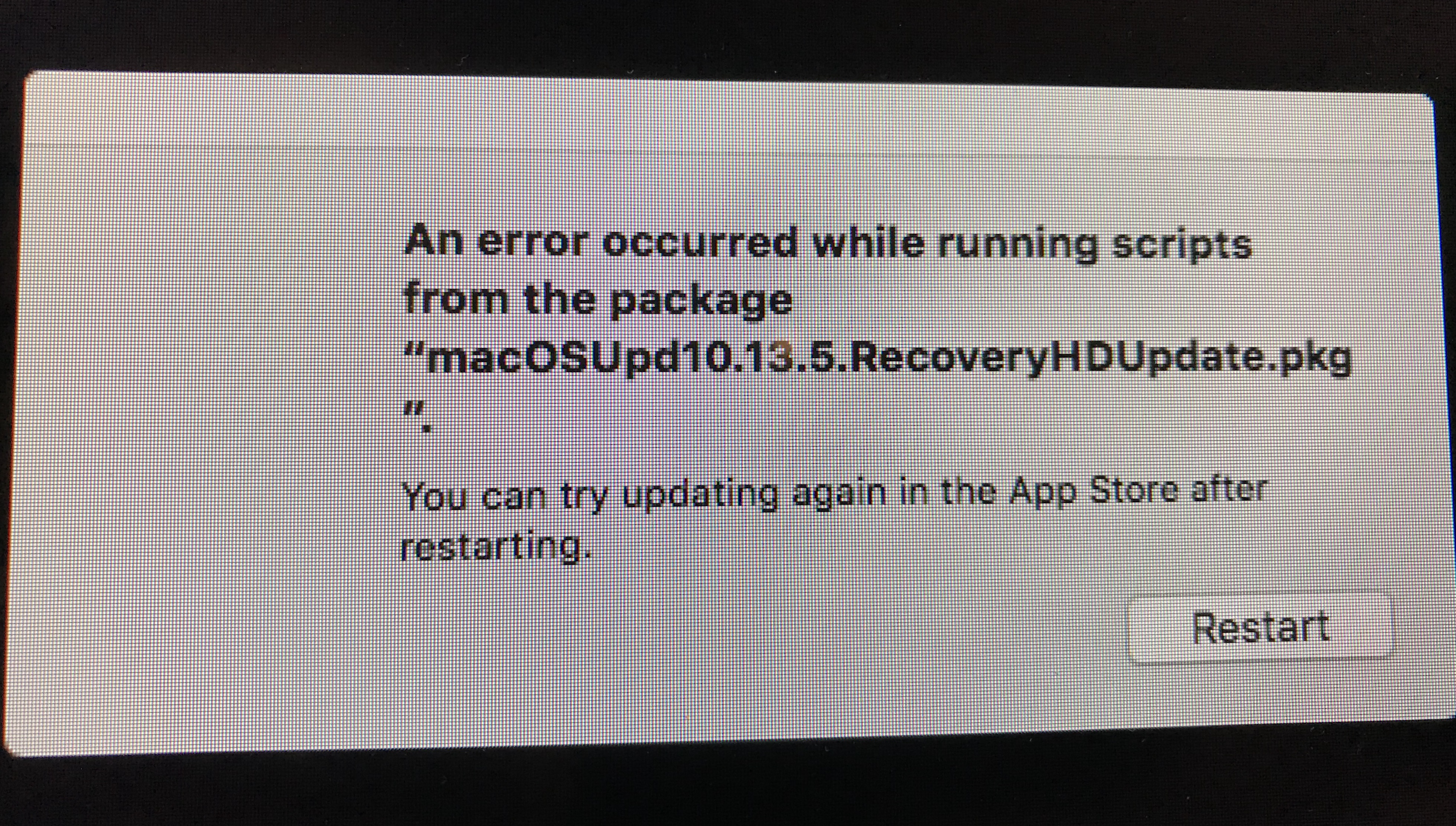@ATC got - saying updates were not completed/installed due to script error (probably the recovery drive issue mentioned earlier because App Store also says there is still an update not finished and has not registered the update to 10.3.5 even though 'about this Mac' reads 10.3.5).