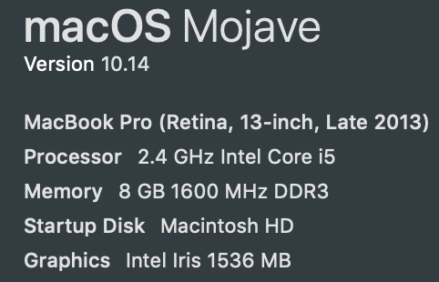Thanks for your reply. Your Mac closely resembles mine except yours must be the 256gb? It’s nice to find someone on here that has about the same specs that I have. How is boot up? Is it about the same or longer? I have never done a clean install before and I originally was on Mavericks, then El Capitan, Sierra, and High Sierra and never have done a clean install. I’m thinking I will upgrade and see what happens. I have my time machine backup if anything would go wrong. Just curious if you have done clean installs before.This is my laptop...