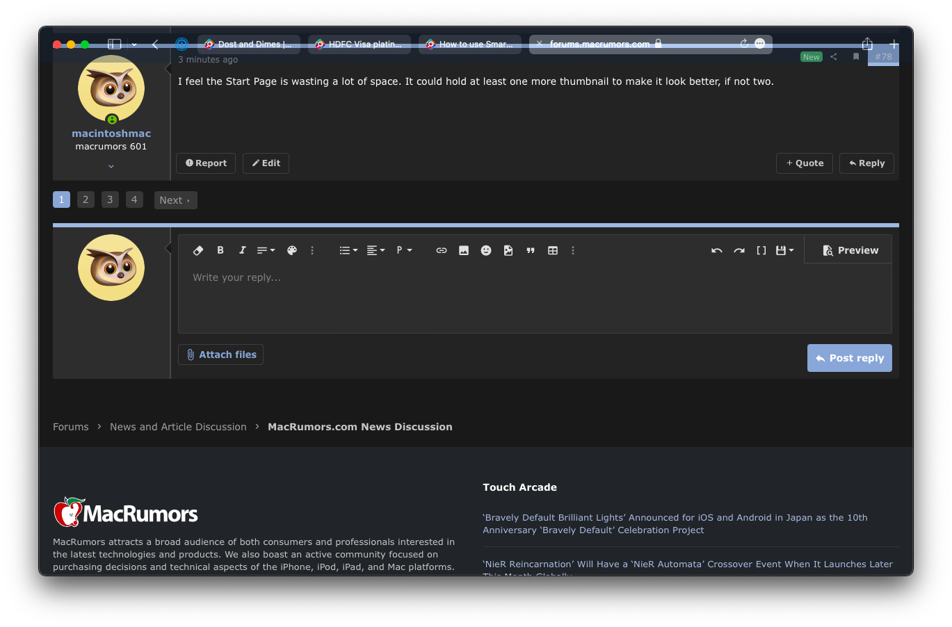 This design is better in every way: It makes far more conceptual sense, with a tab’s URL being a property of the tab, rather than the other way around and with the New Tab, Show All Tabs, and Tab Group buttons appearing adjacent to the tabs to which they correspond. It also provides an all-around lighter and airier look (if not more actual screen real estate).