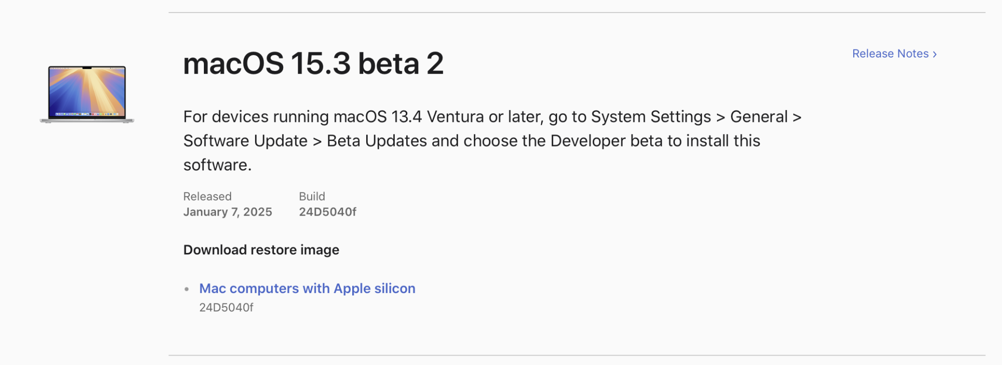 • macOS Sequoia 15.3 Beta 2 Release Notes