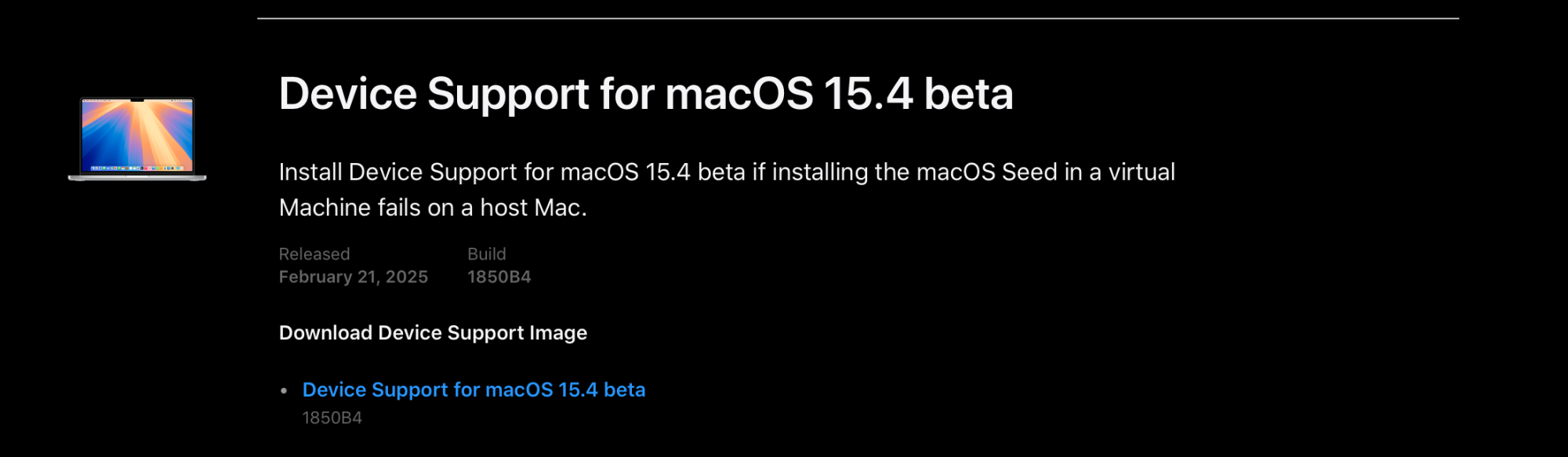 - Upon update to macOS 15.4 beta 1, M4 Macs will be unable to launch virtual machines and attempts will result in a system restart. (145309647) (FB16542958)