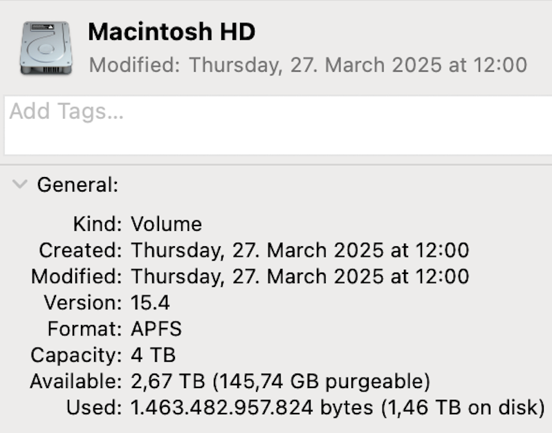 This is madness - difference in purgeable space between using Apple Intelligence or having it disabled is increasing with each update while actual use does not change. It would really be interesting to see to what level this would be increasing and where would purgeable vs used space ratio can end up like that - 100% maybe?View attachment 2498131View attachment 2498130