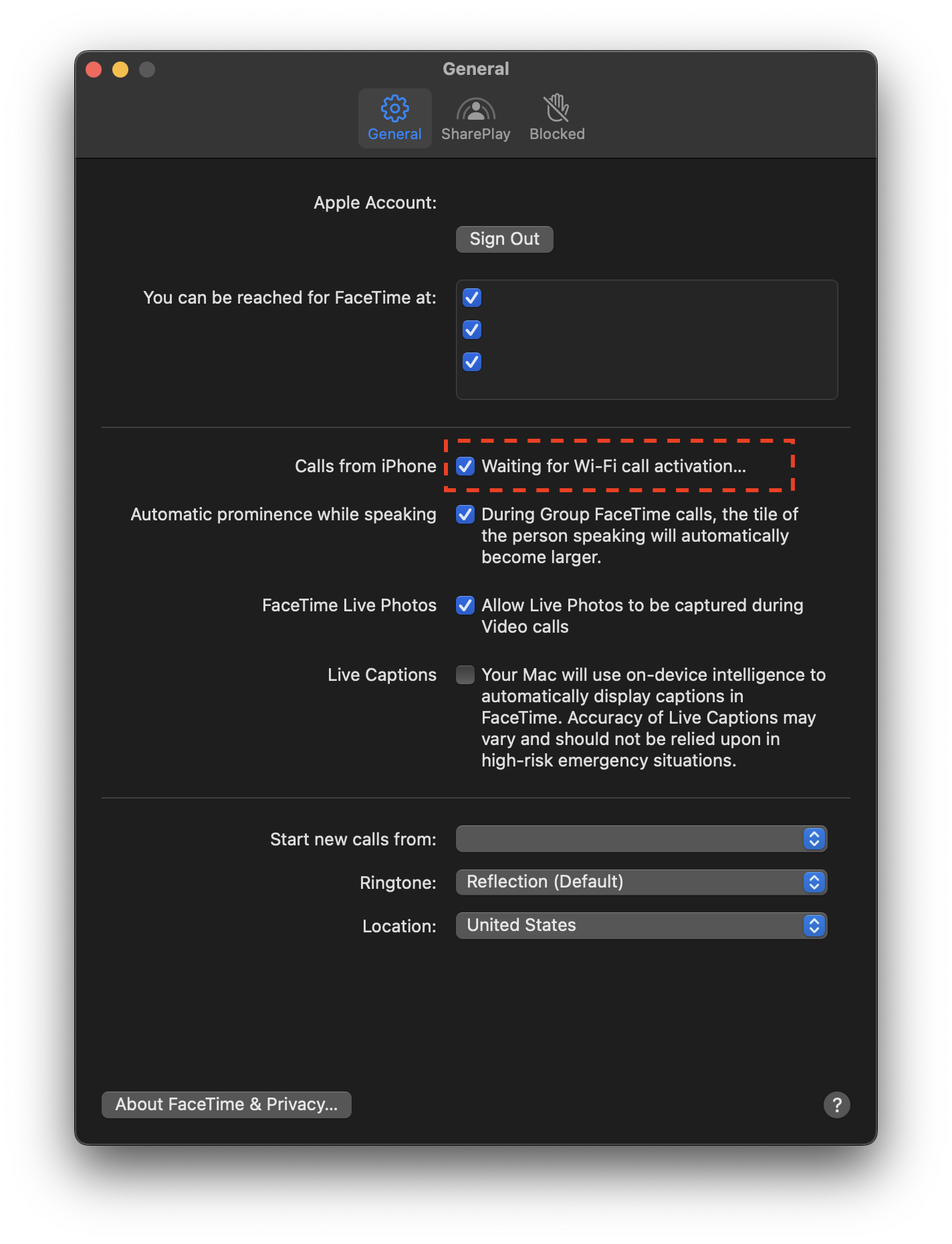Last week I updated all my devices to the latest firmware (iOS 18.6, iPadOs 18.6, Sequoia 15.6). After this, my MacBook Pro (M3 Pro) is not able to activate Wi-Fi calling anymore. It was working perfectly right before I updated my devices.