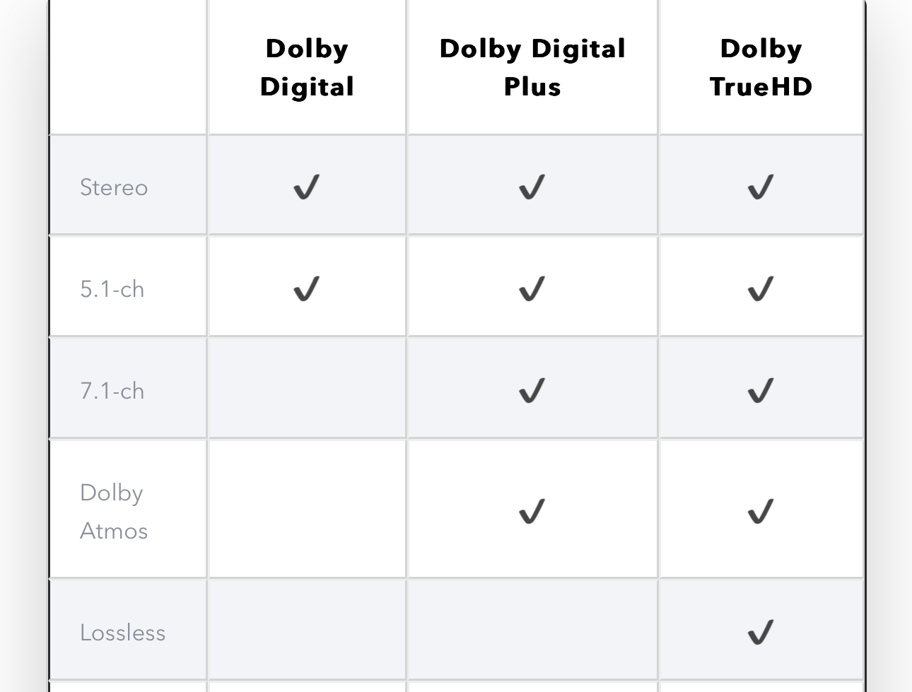 Not exactly, it supports lossy Atmos, not lossless HD audio like Dolby TrueHD or DTS HD-MA, it can’t decode those or send the unencoded version for the receiver to decode which is what passthrough would allow.Yeah I have no idea what the end of the OP meant when mentioning TvOS. Dolby Atmos and Audio of multiple formats is there has been there a few generations.