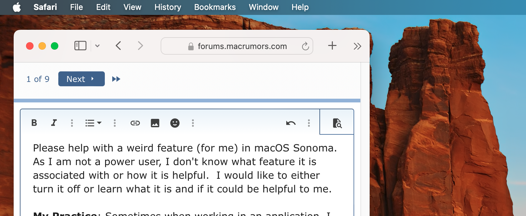 My Practice: Sometimes when working in an application, I click off of the application to change to finder or some other application. In the past, this just worked (probably why I formed this particular habit). In Sonoma, something new is happening.