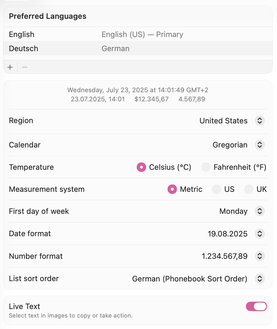 The language can stay German only. Some of those settings like date and number format might change and you have to change them back. Could be only for me because I use English as primary language.