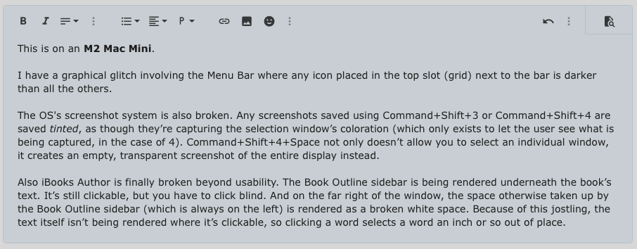 Very weird scrolling issues in Safari with the trackpad(it'll just stop scrolling). I noticed it had been mentioned in some of the early beta threads too.