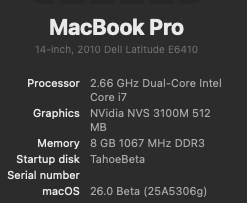 Installed Tahoe 16 beta2 on 2009 MacBook Pro 5,2 fitted with an SSD; interesting results.