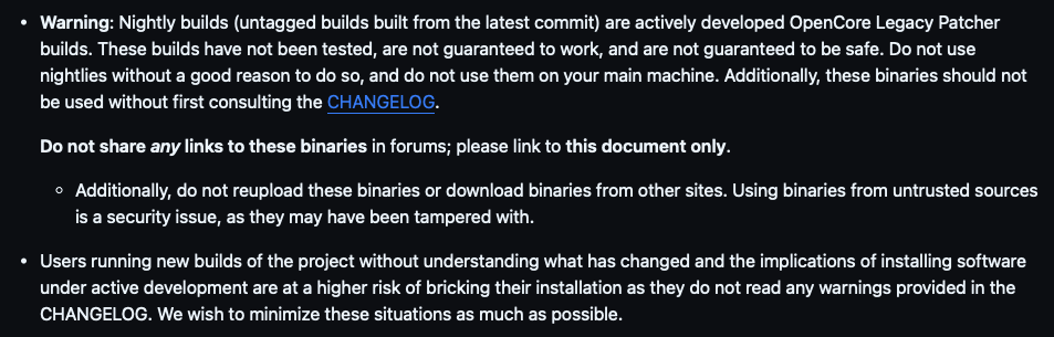 - git clone https://github.com/dortania/OpenCore-Legacy-Patcher --branch <developer branch>
