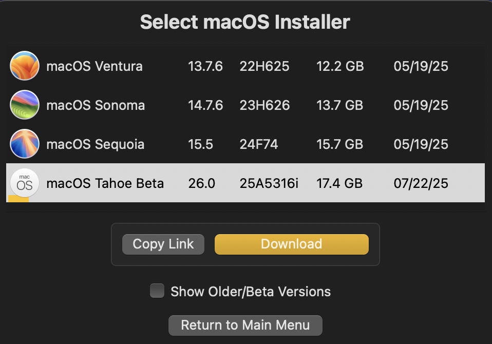 Out of curiosity: when using 3.0.0n does it say so in the UI?I have made many OCLP/USB installers in the past and all have worked. Using 3.0.0n and the download, with OCLP installed also, shown in file doesn't, I get the crossed circle Apple support message. Has anyone got it to work. It is just for experimenting.