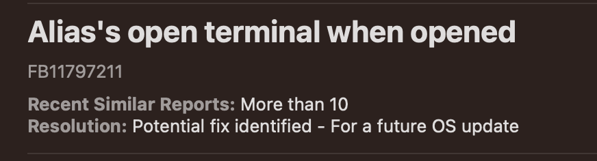 - (⚠️MAJOR ISSUE) Alias's on the desktop open terminal (FB11797211)