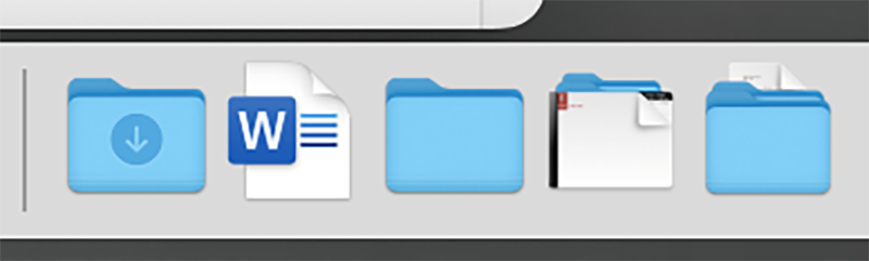 Put your two aliases (Firefox and Brave) inside a folder called Browsers. Make an alias of Browsers. Drag the alias of Browsers to the dock (towards the right). What icon do you see in the dock? We are all seeing a blank document (with alias label) in the dock.