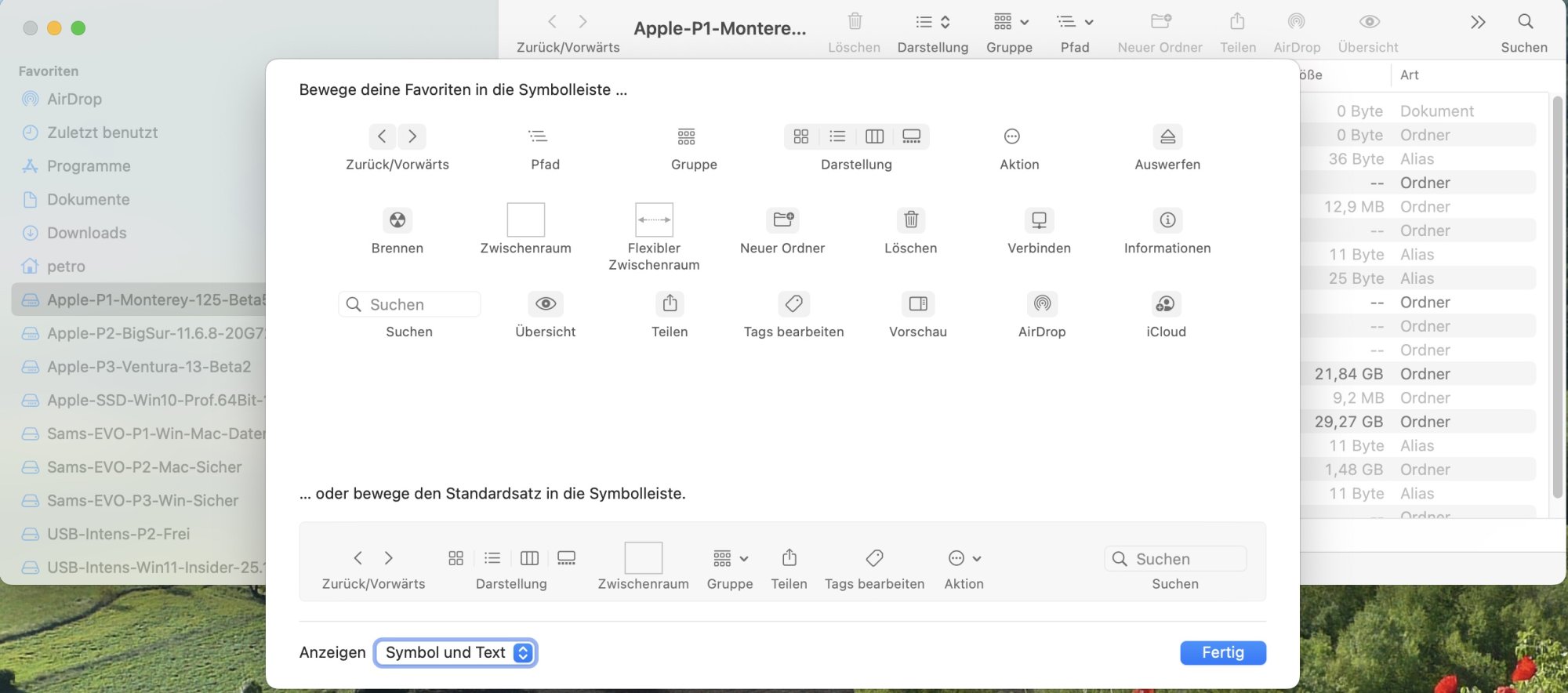 I knew what you meant and I stand by my answer. There are two things you can do, first go to System Settings in Extensions and check if you have any Finder activated extensions and deactivate them temporarily and try again, and second change your primary language temporarily to English and see if the Finder's toolbar still crashes, as it is very well known that in betas most of the other languages don't work correctly. Seeing your screenshot I BET YOU that the moment you put English as your primary language all these problems will go away.I mean this problem, what works here in Monterey does NOT work in my ventura Beta2 and also not in Beta3 on my Intel imac mid 2020.