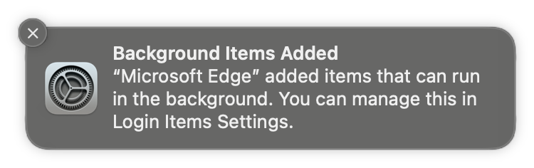 System Settings -> Notifications -> Show Previews) the annoying notifications appear as "Login Items." If previews are enabled, the notifications are labelled "Background Items Added" and contain the message "[app/process name] added items that can run in the background. You can manage this in Login Items Settings."