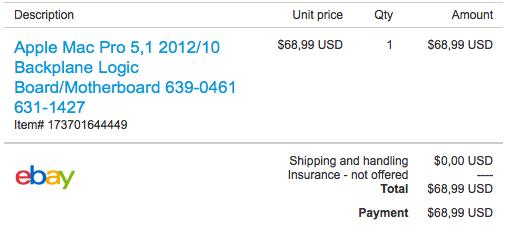 I've literally replaced all but the front ports on my 5,1, swapped out the PS and the backplane. I'm thinking I bought a either a bad PS or BP or both. I have been very careful on all steps and have followed all best practices on this forum to rebuild my machine to top specs, I have a EE background, I'm meticulous. It just won't start consistently, both the original and the new existing. Some where in that mix is a bad PS or BP. Here's the latest symptoms.Next step is to replace the backplane, with some searching and without hurry you can get one from eBay around $70.