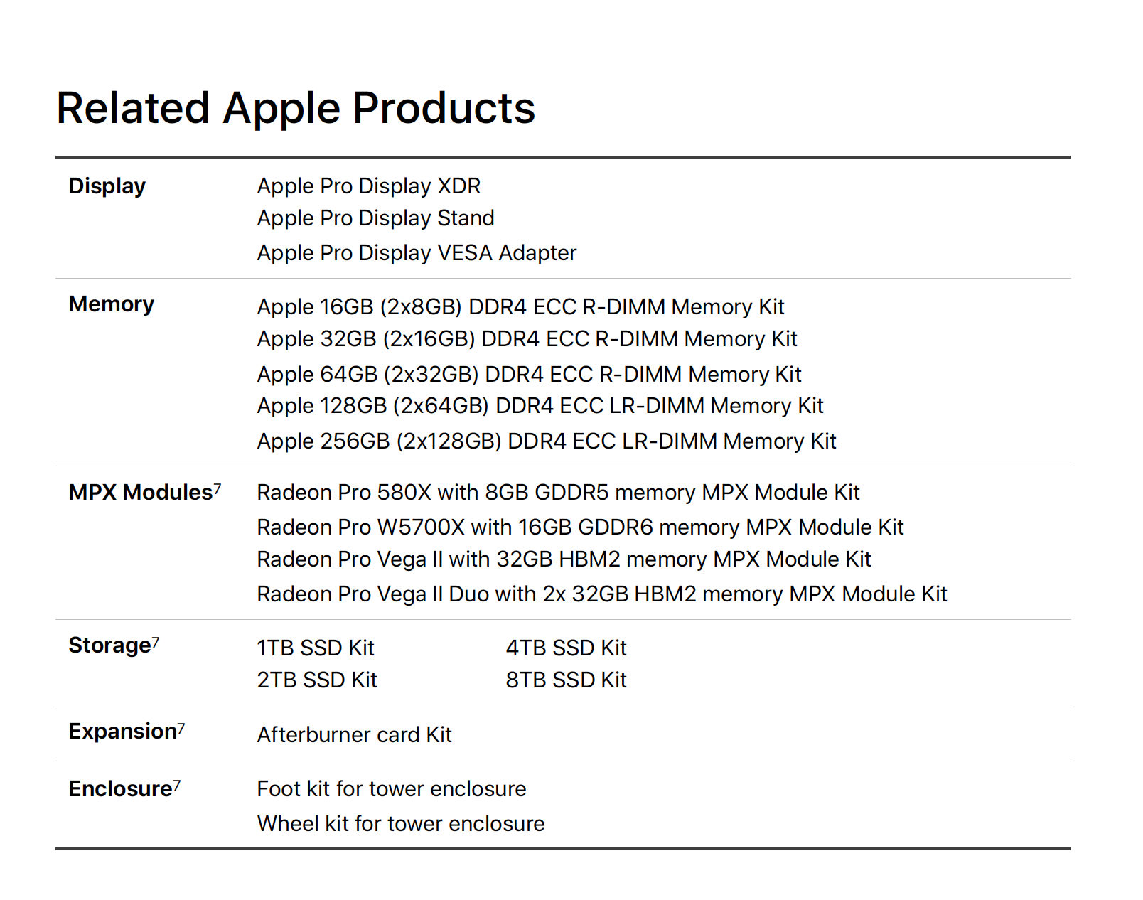 The storage kits are new. Wasn't an option originally.Not quite true. Yes Apple needs to handle any changes to the installed SSD, but it can buy upgraded. Below are the accessory kits listed by Apple for the 2019 NcMP:
