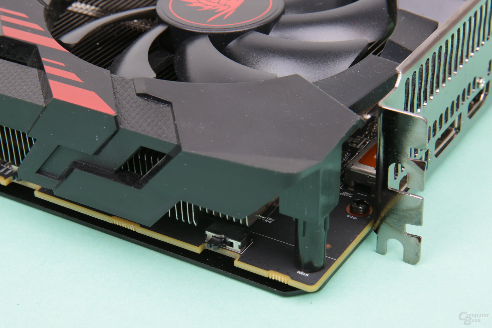 so i need to switch it to the opposite side, closer to the ports plate? Means to the right (on the picture is on the left)?With the second bios the card should run in the sweet spot reduced to 226 Watt; a bit slower but much less energy hungry.