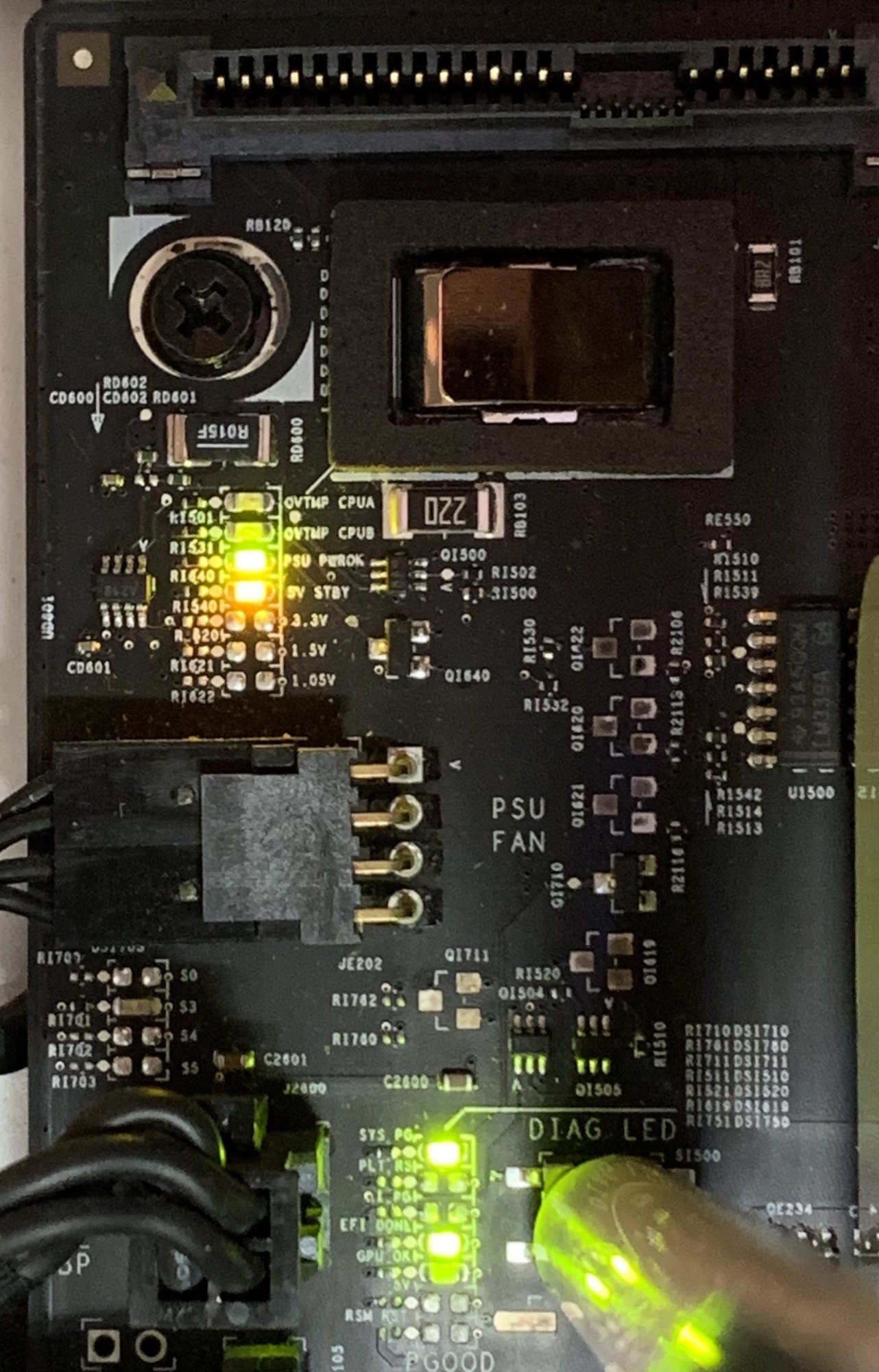 The Diagnostics LEDs look OK after booting: