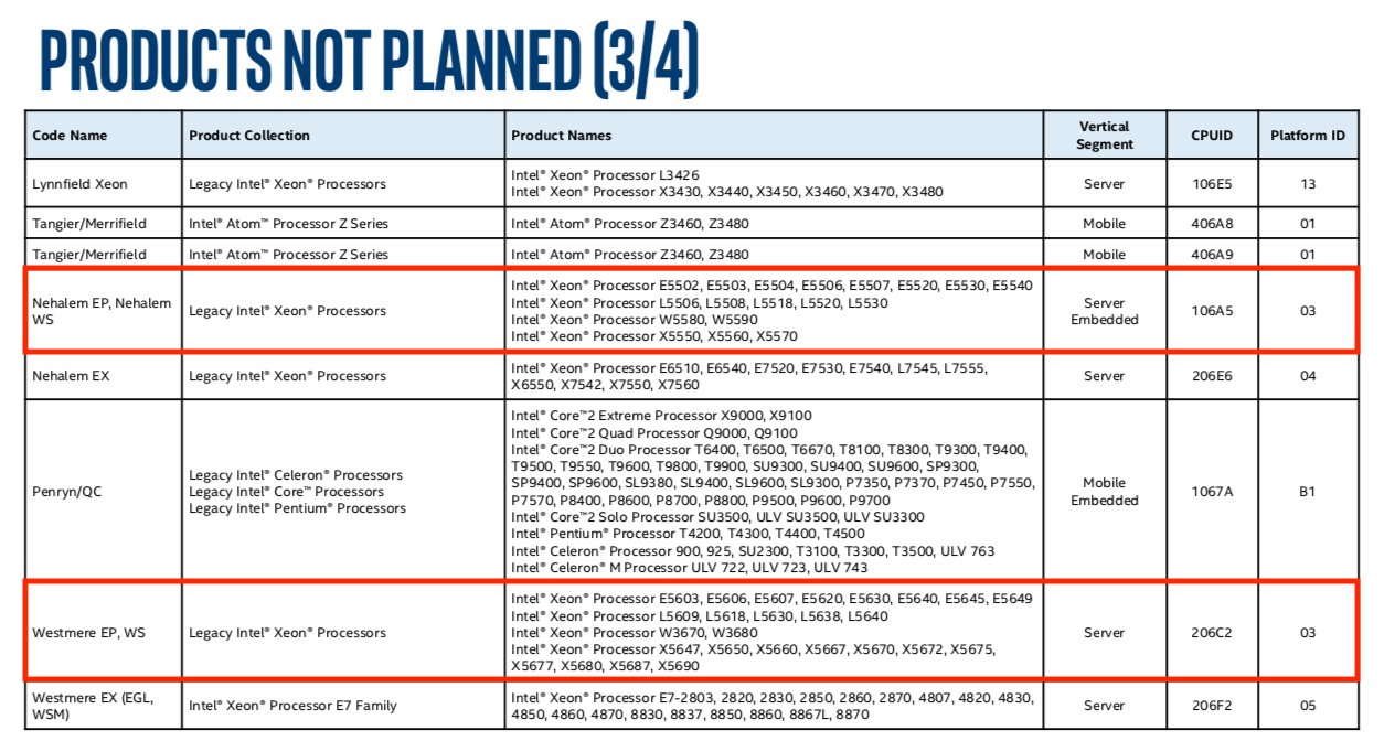The important thing is that Intel will not update microcodes for any Xeons used in MP5,1.