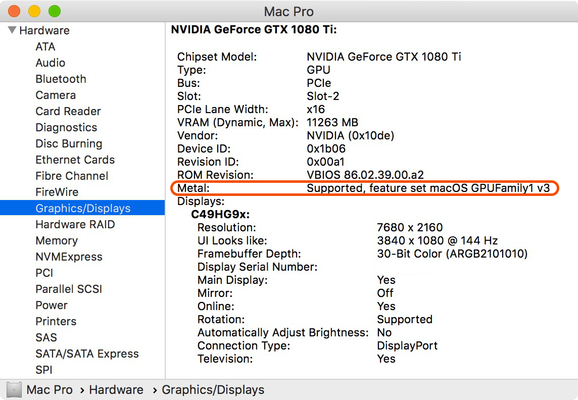 Nvidia card since Kepler also has Metal support. Can perform the 144.0.0.0.0 bootROM upgrade. Sounds like you misunderstood that your card has no Metal support.
