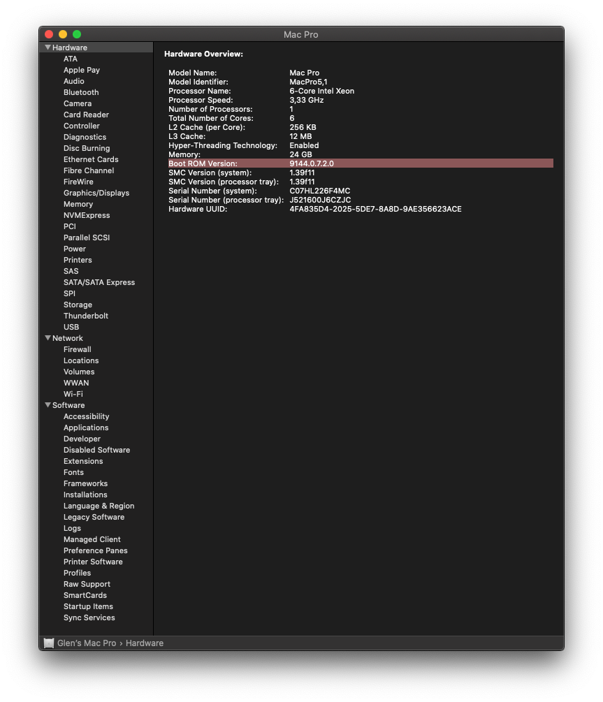 Now, I know from the las time I updated/flashed the ROM back in 2019 that the Boot ROM should be version 144.0.0.0.0 and not what is displayed here.