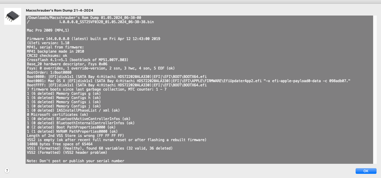 Model: MacPro5,1, BootROM 9144.0.9.8.0, 12 processors, 6-Core Intel Xeon, 3.46 GHz, 64 GB, SMC 1.39f11