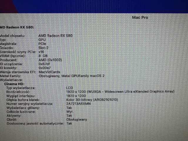 Here is what currently appears on my Mac Pro with the second GPU from Marek: View attachment 2415492