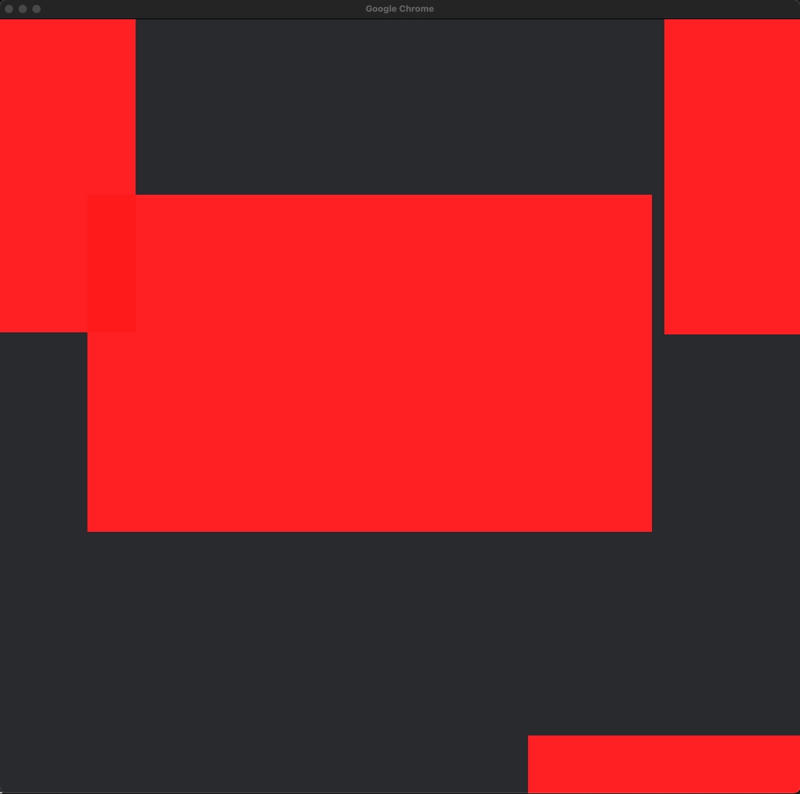 Windows are showing up as all background color with big rectangular blocks of red.