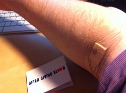 3 units of platelets given and a nice piece of coffee cake consumed at Stanford's blood center. Cool idea to have the drive. I had been to busy the last few months to go, but the post reminded me. Was 5th donation this year. I make it again on monday.