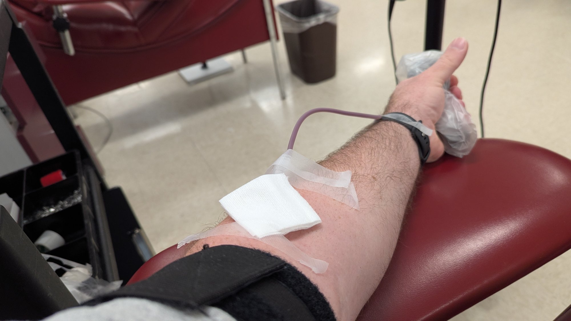 Ooof! Sorry to hear that! Kudos for you for finishing it even with the pain.Donated today. One of my most painful in memory. The phlebotomist didn't open the clamp on the collection bag, the pressure during and just after the stick caused quite a bit of pain that she initially thought was due to scar tissue. They were about to pull the needle and cancel the donation, then they found the closed clamp. 10 minutes later I was moving to the canteen for a snack and bottle of water. I had several people around me until things settled down and I was flowing, wanting to make sure all was good.