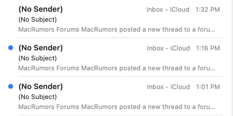 For the last month or two half of my emails from MacRumors say "NoSender." It isn't pretty to look at.
