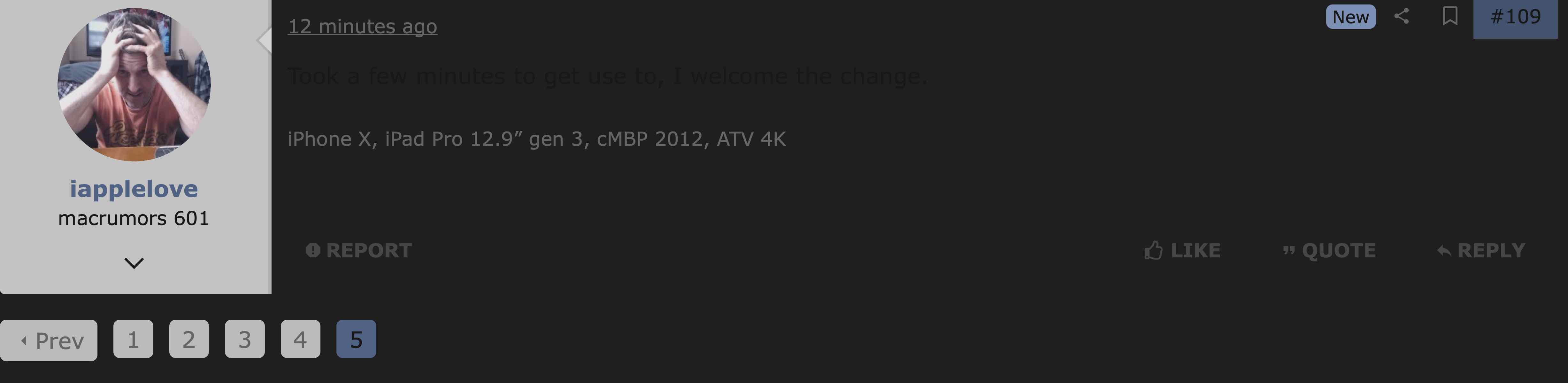 To all the MacRumors team, thank you very much. Especially to those who made this change happen. I thanked Arn for creating MacRumors years ago, and now I wanted to thank to all the people involved who made this possible.