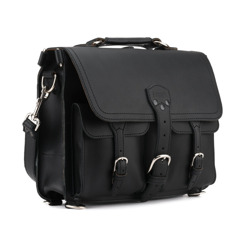 Made of a thick, durable full-grain American cowhide leather, the Luxury Briefcase is immaculately constructed with features like careful hand stitching, rigid but comfortable leather handles and a removable shoulder strap with a leather pad. Out of the box, the Luxury Briefcase is stiff and pristine, but with use, it'll loosen up and develop a unique, worn in look. The leather has been tanned so it's resistant to stains and water, and the interior is made from a durable pigskin that looks like it's going to hold up well to daily abuse.
