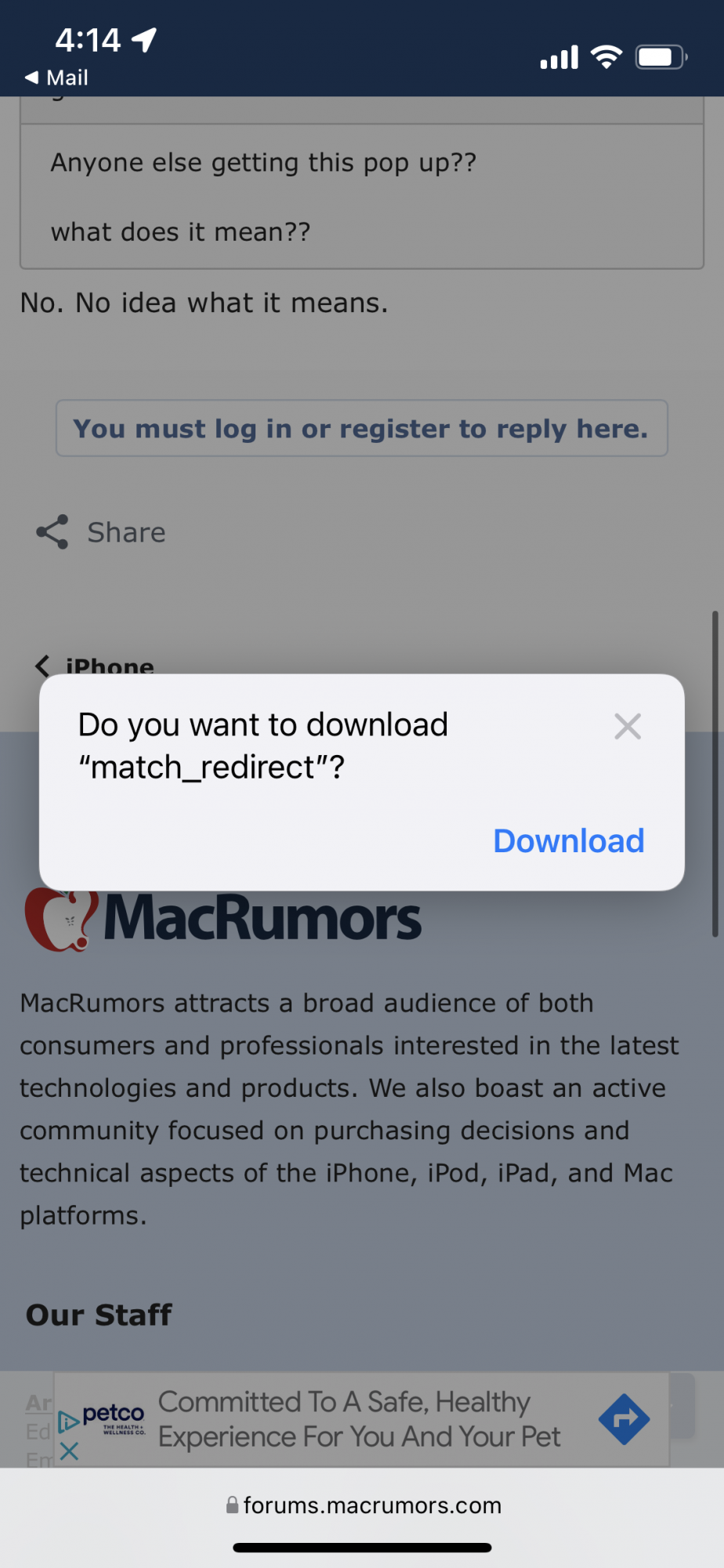 Tapatalk is an app that you view many forums. Been using it for years. Use it for macrumors/imore/Volvo/Rolex forums. It’s the best honestly. And I too got this message viewing macrumors website earlier on.