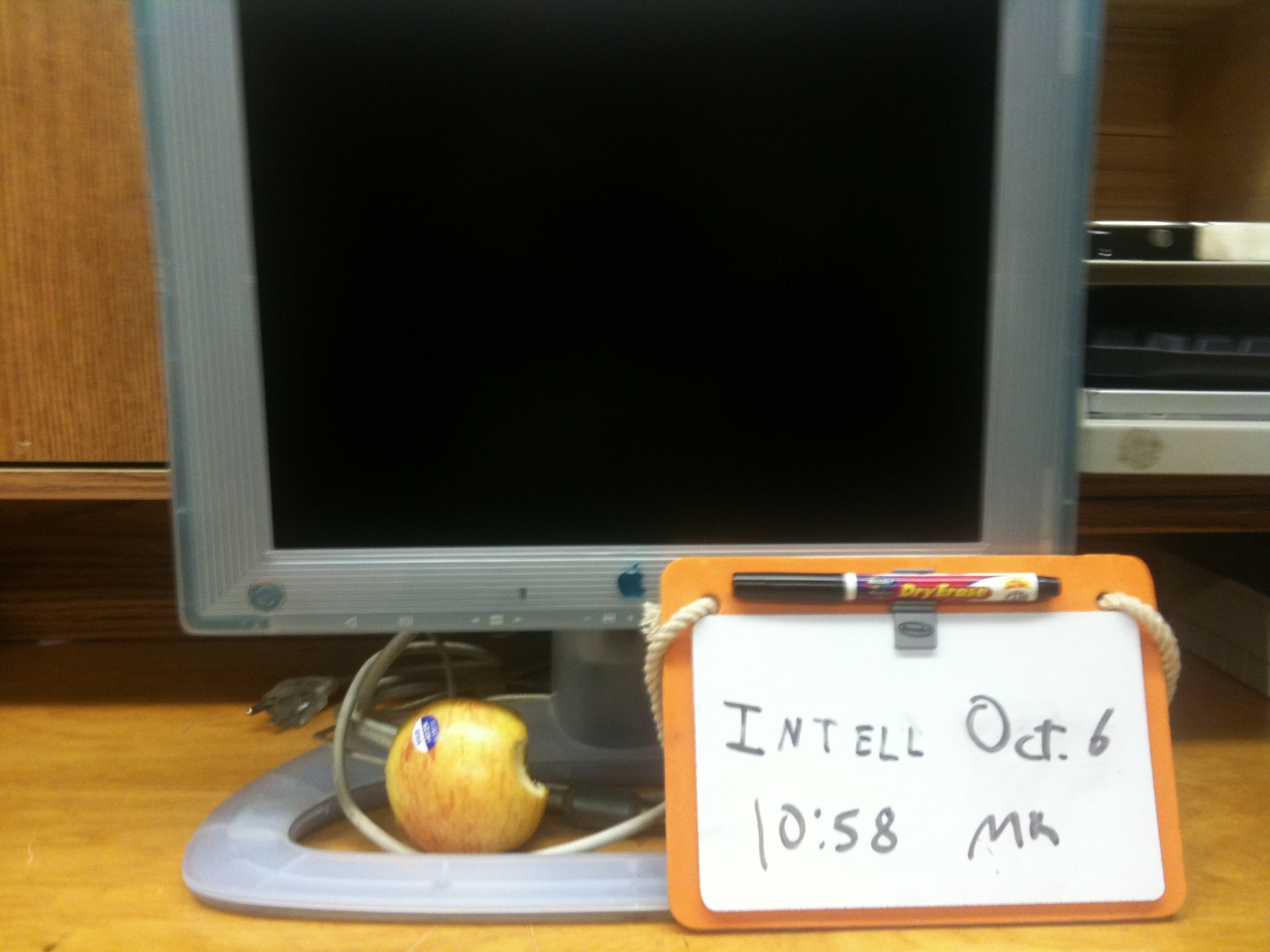 An apple with an Apple Studio Display: