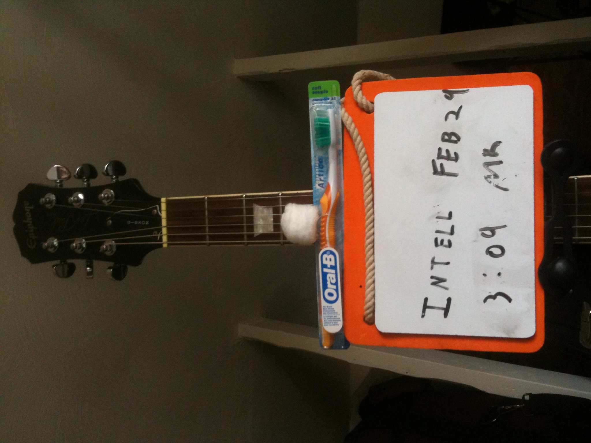 Next challenge : POST A PICTURE OF A TOOTHBRUSH AND A COTTON WOOL BUD BALANCING ON A GUITAR
