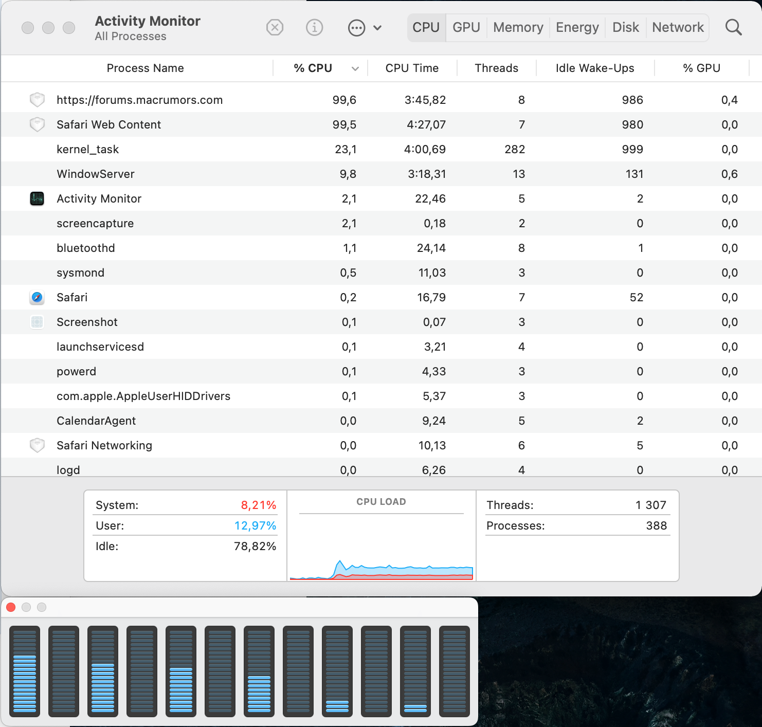 Thanks to another user post I solved the Mac CPU usages simply adding