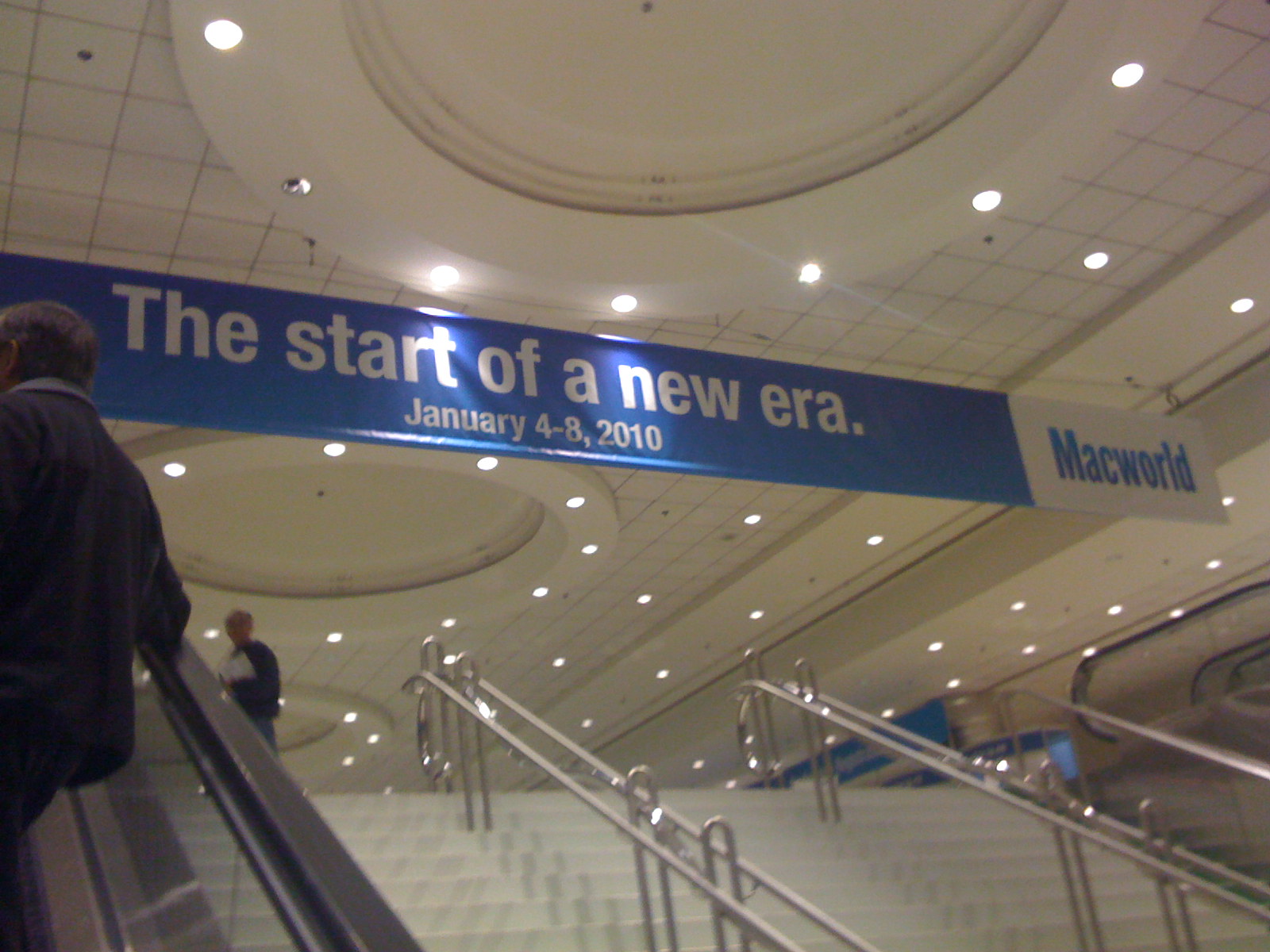 Wait a second, don't these banners look familiar? Obviously every macworld has covered banners but look at the shape of them- long and panoramic? Ring any bells? These are snow leopard banners, they must be introducing all of the new features. The the leopard and tiger banners were strikingly similar in shape- with all of the new icons and features. An iPhone/Mac banner would be a much different dimension, much more squarish.
