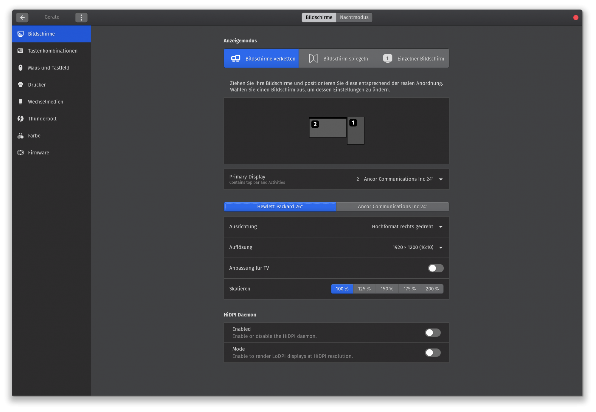 battery, normal, high performance. It works under Linux as well. So by just pressing one button I can greatly reduce noise, or put the fans to full speed if I'm working on something demanding and don't want any throttling.