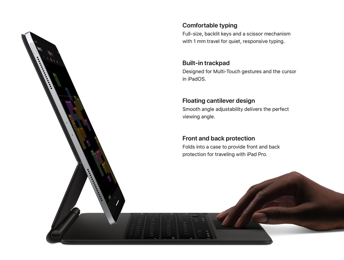 Another observation is that the same people using a Magic Keyboard are also shown later NOT using it. This doesnt fold back like the Smart Keyboard so.... where did they put their Magic Keyboard? Are they now carrying around an unprotected 12.9 iPad AND a separate unattached 12.9” keyboard case in their purse?In the newest videos it's interesting how they position the case as a home stand of some sort, where people just take the ipad & go. Only in the beginning & end do they treat it as a case.