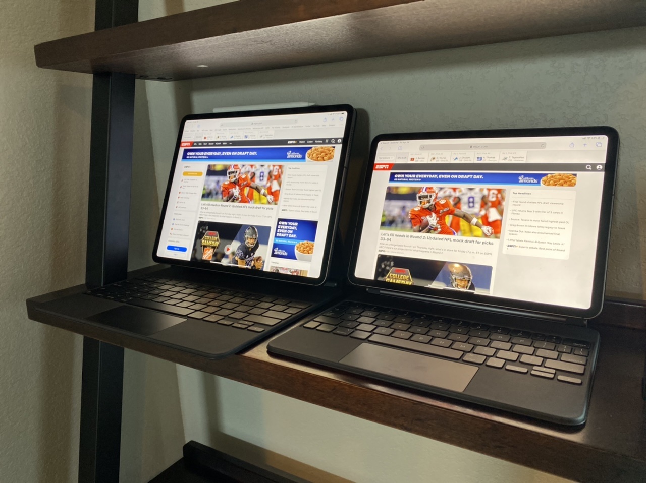 My wife owns the 11”. It’s just too small for me and the keyboard is cramped. I would choose the 12.9” every time.