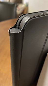 I ordered a soft case for my iPad Pro with Magic Keyboard and it arrived today. Up until now I just put it in my backpack “naked”. Well when I took it to put into my new case I saw that the rubber around one side of the hinges got stretched. I don’t know how that happened but I guess it got caught on something as I put it inside my bag. My case arrived a little too late